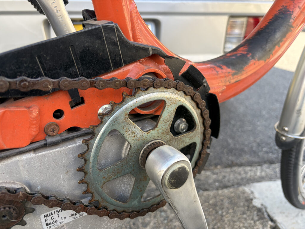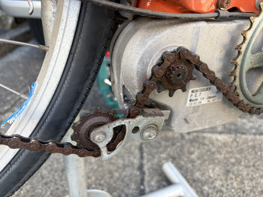 長年大切に乗られていたとのことで、チェーンの錆が進み、かなり伸びている状態でした。チェーンは伸びすぎると