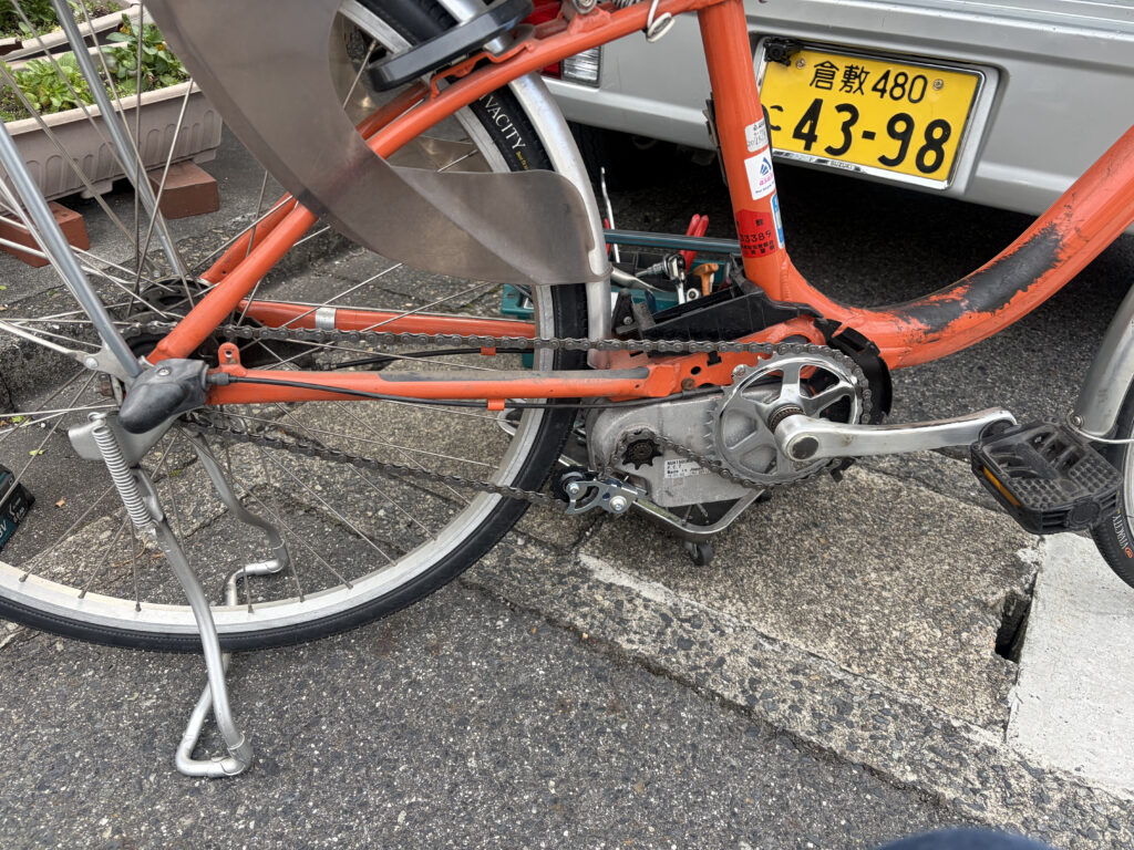 倉敷市堀南のお客様より、パナソニック「ビビ・L」電動自転車の駆動系(チェーン)交換のご依頼をいただきました。